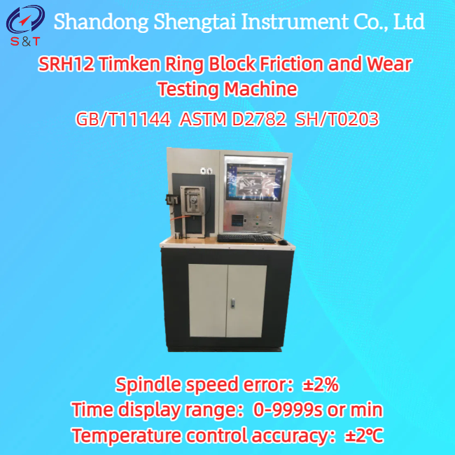 La máquina de ensayo de fricción y desgaste del bloque de anillos SRH12 Timken, también conocida como máquina de ensayo Timken, mide la capacidad de carga de varios lubricantes (aceite lubricante, grasa lubricante,y película lubricante sólida): en condiciones de ensayo especificadas, se compara la fuerza máxima de ensayo a la que puede resistir el lubricante antes de que se rompa la película de aceite con el valor de OK,que cumple la norma nacional SHT0203-1992 método de medición del rendimiento a presión extrema de la grasa lubricante (método de la máquina de ensayo Timken)El principio de funcionamiento es que el componente activo es un anillo giratorio estándar.y el componente pasivo es un bloque rectangular fijo de tamaño estándarMediante la medición de la anchura de las marcas de desgaste en forma de tira en el bloque rectangular de la muestra pasiva bajo diferentes cargas,así como la fuerza de fricción y el coeficiente de fricción entre los materiales del par de fricción, se evalúan la capacidad de carga del lubricante y el rendimiento de fricción y desgaste de los materiales del par de fricción.Puede evaluar el rendimiento de lubricación de varios lubricantes en condiciones de lubricación por inmersión en aceite, especialmente adecuado para simular el rendimiento anti arañazos de los aceites de engranajes de automóviles medianos y altos, y puede utilizarse para el estudio del rendimiento de desgaste de varios metales,Materiales y recubrimientos no metálicos.