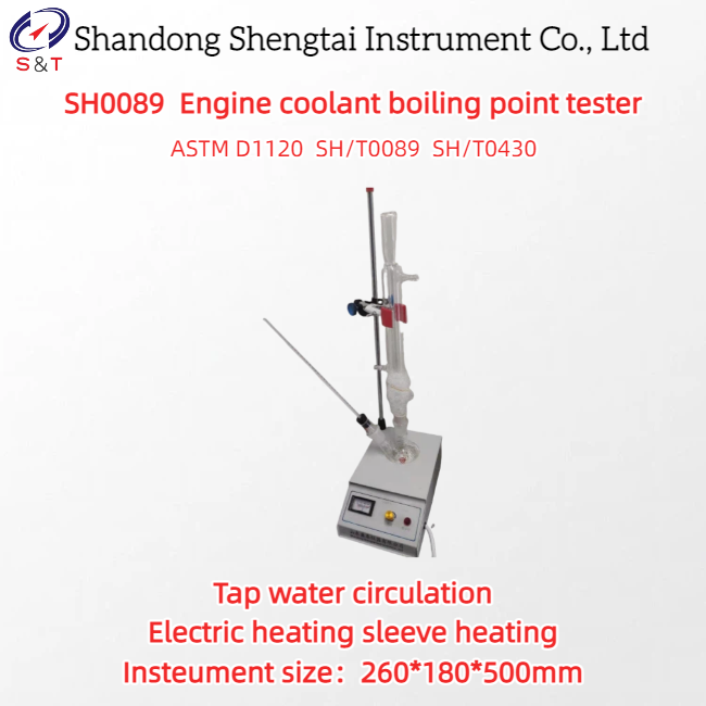 El probador de punto de ebullición del líquido de refrigeración del motor SH0089 se utiliza para medir el punto de ebullición de equilibrio del líquido de refrigeración del motor, adecuado para medir el líquido de refrigeración del motor diluido o concentrado. Normas aplicables:ASTM D1120 SH/T0089 "Punto de ebullición del líquido de refrigeración del motor" o SH/T0430 "Determinación del punto de ebullición del reflujo de equilibrio del líquido de freno"