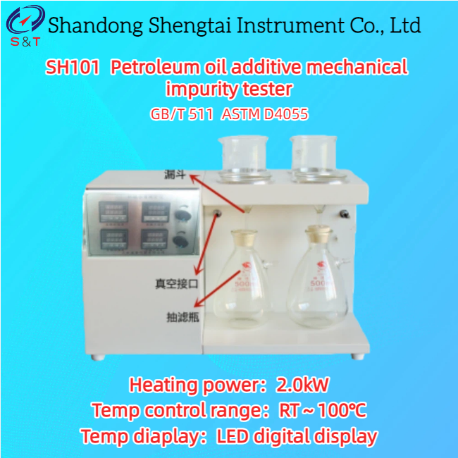 El probador de impurezas mecánicas SH101 está diseñado de acuerdo con los requisitos de la norma nacional GB/T 511 "Método de determinación de impurezas mecánicas de productos de petróleo y aditivos (método de peso)". Es adecuado para la determinación del contenido de impurezas mecánicas de todo tipo de aceites ligeros y pesados, aceites lubricantes y aditivos en productos de petróleo.