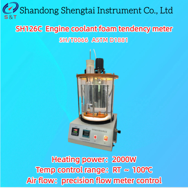 SH126C engine coolant foam tendency tester is designed according to the requirements of the People's Republic of China petrochemical industry standard SH/T0066 "engine cooling foam determination method", adecuado para la determinación de espuma diluida o concentrada del líquido de refrigeración del motor según el método de ensayo de la norma SH/T0066.