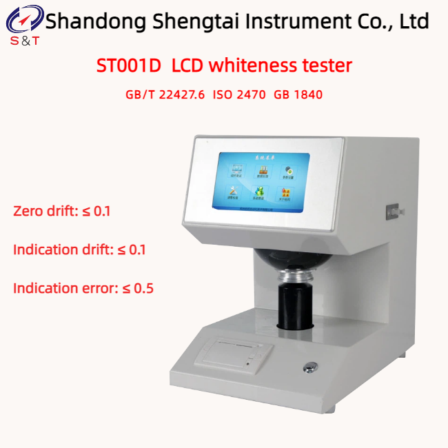 ST001D liquid crystal whiteness tester is widely used in the fields of medicine and food, flour, starch, paper making, printing, textile printing and dyeing, ceramic enamel, building materials, chemical industry, salt making and so on. It is used to measure the whiteness of objects, and can also measure the opacity, transparency, light scattering coefficient, light absorption coefficient and ink absorption value of paper.